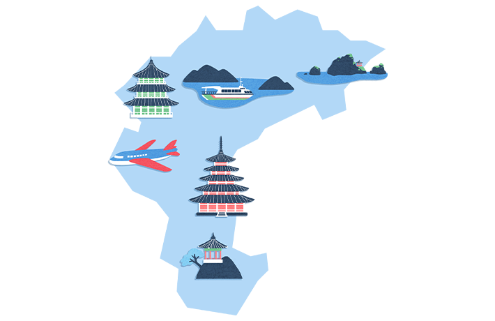 Gyeongsangnam-do offers both mountain and marine tourism experiences. The maritime parks centered around Tongyeong and Namhae allow you to enjoy both islands and sea. In spring, you can visit the Hwagae Cherry Blossom Festival and the Sunmae-won Plum Blossom Festival, while winter brings the Dongbaek Festival that colors Geoje Island red. Additionally, you can enjoy various experiences such as hot springs, pottery making, and strawberry picking.